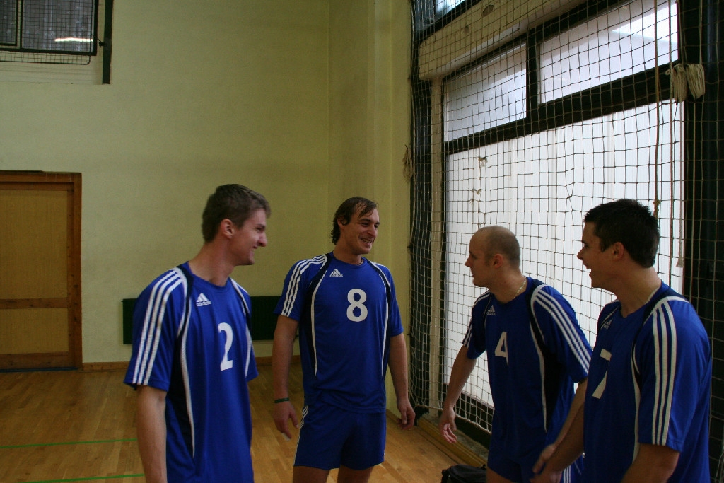 Dva sety prvního zápasu vyhráváme díky několika chybám soupeře na pozici Univerzála, který chybuje 4 x po sobě a je střídán, následně uhráváme už i každou třetí bodovku jak ze sítě tak z doskoku.