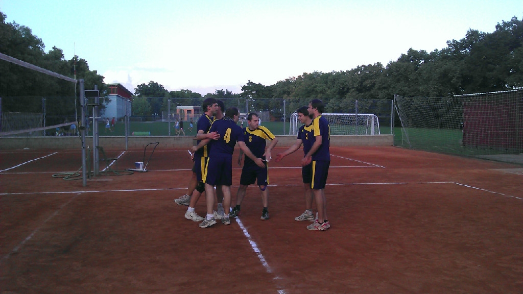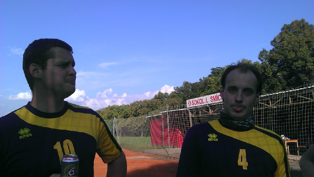 Ve čtvrtém setu soupeř evidentně znervózněl a začal všechno hrát přes svého hovaďáka (Golema), kterej chodil horem a luxusně servíroval. Naštěstí jsme si udělali hned na začátku malý náskok a nepouštěli soupeře před sebe. V koncovce jsme se sice začali klasicky sypat, ale Mazy se Slávou nás naštěstí opět podrželi na servisu,takže nakonec slavíme první a snad ne poslední vítězství v soutěži.